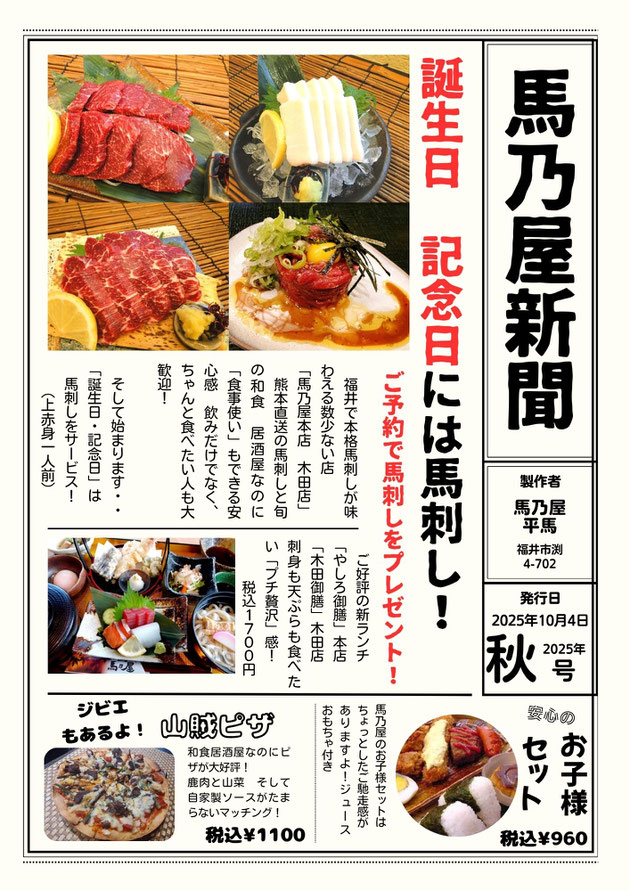 「馬刺し」は馬乃屋の逸品です